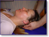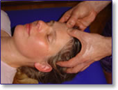 Leichter Kopfhautmassage. Ihr Gesichtsausdruck ist anschließend „- um Jahre jünger“-